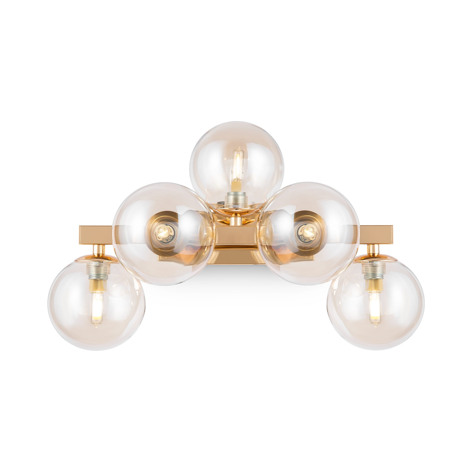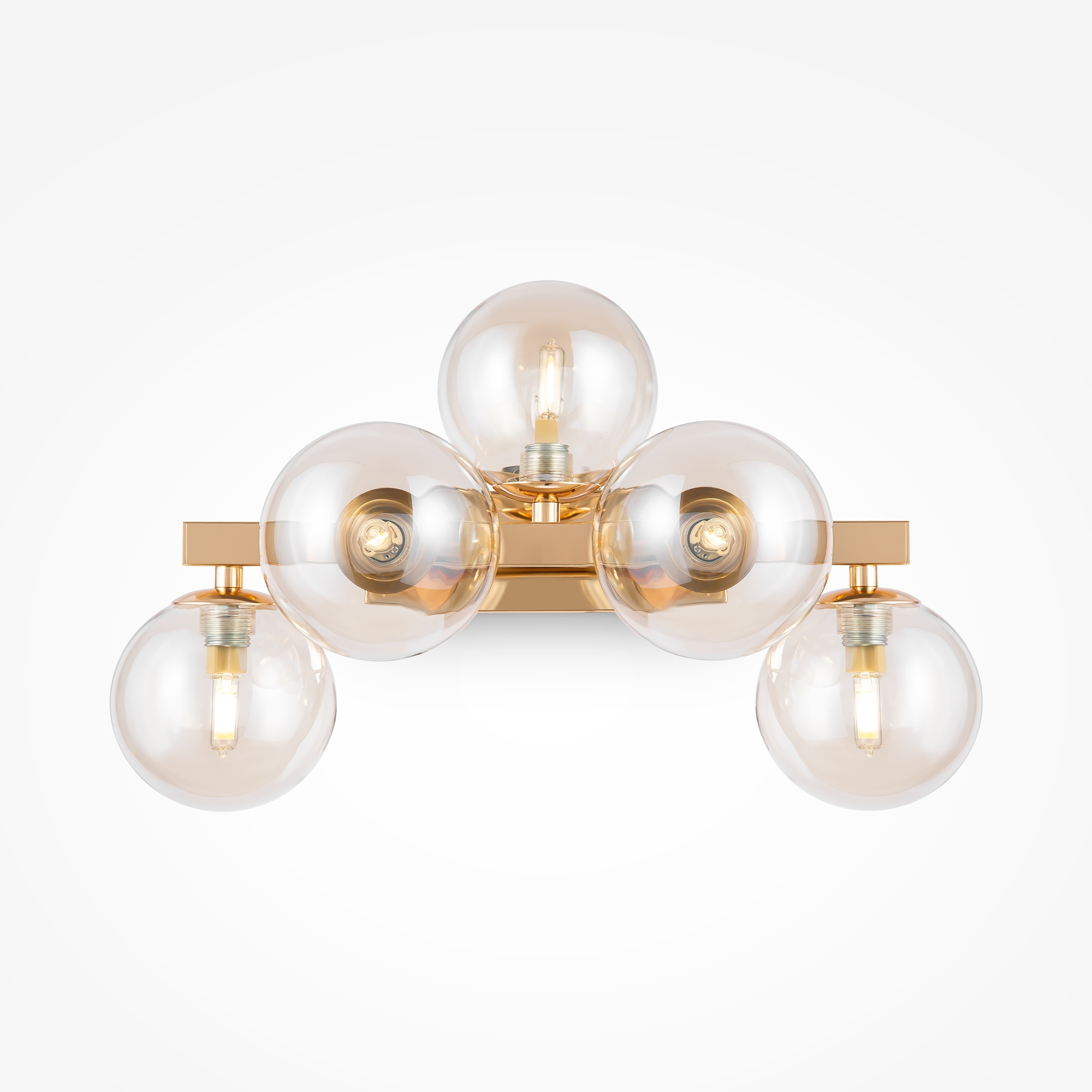 · Metallbeschläge in 4 Farbtönen: Mattes Schwarz, Schwarz, Chrom, Gold. Lampenschirme: Geblasenes Glas. Farbtöne: Rauch, Bernstein, Cognac, Mattes Weiß und Schwarz. Design mit Nachahmung der Molekularstruktur. Durch Seile einstellbare Höhe der Pendelleuchten. Leuchtmittel mit einer Fassung G9.