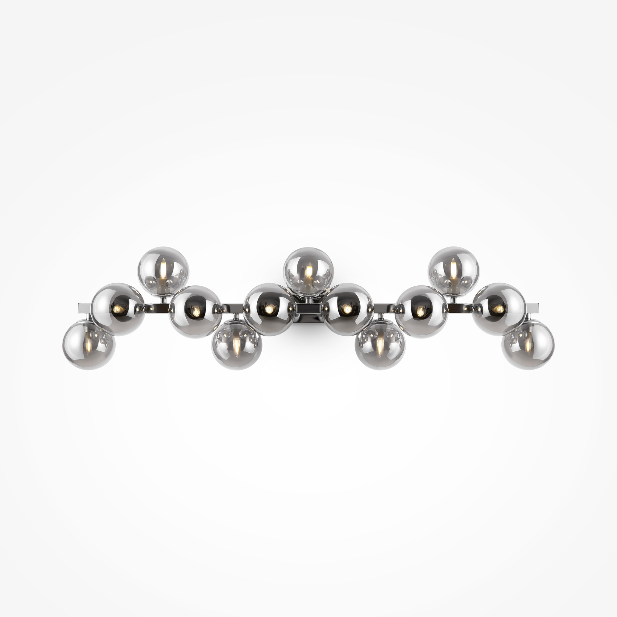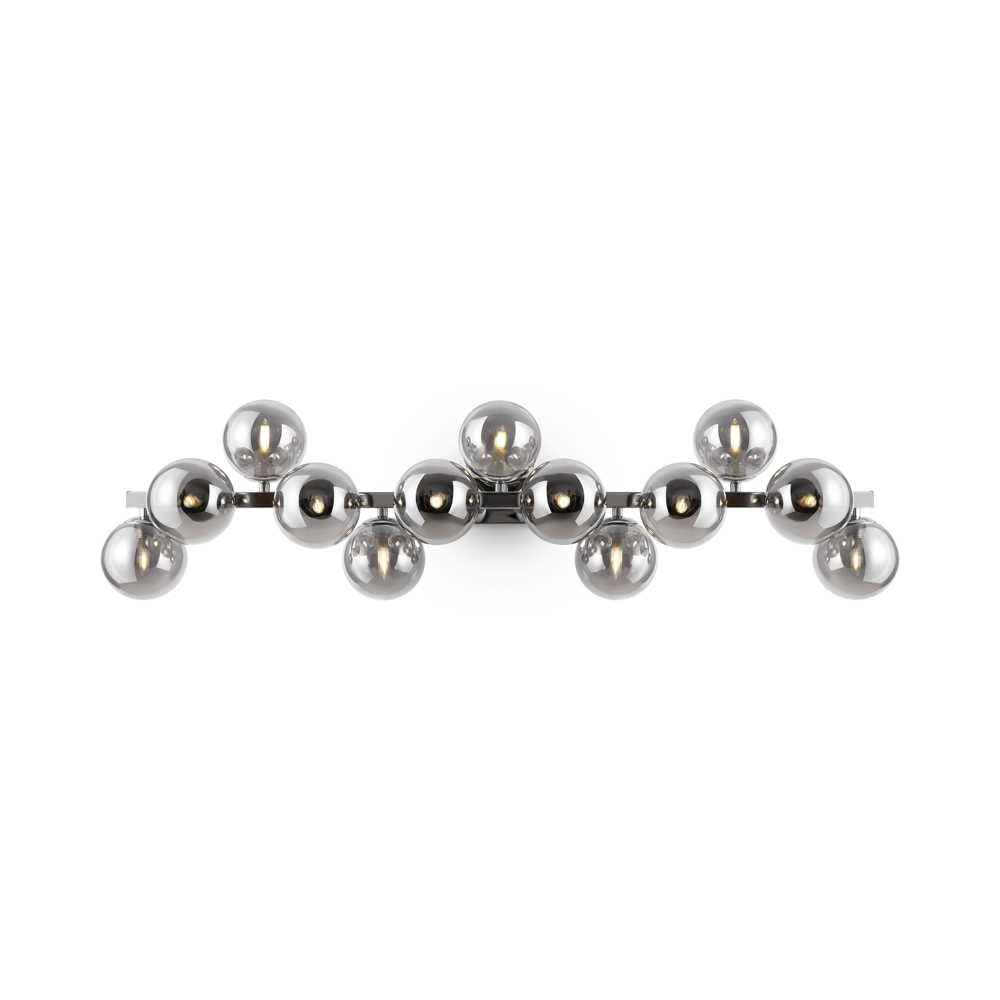 · Metallbeschläge in 4 Farbtönen: Mattes Schwarz, Schwarz, Chrom, Gold. Lampenschirme: Geblasenes Glas. Farbtöne: Rauch, Bernstein, Cognac, Mattes Weiß und Schwarz. Design mit Nachahmung der Molekularstruktur. Durch Seile einstellbare Höhe der Pendelleuchten. Leuchtmittel mit einer Fassung G9.