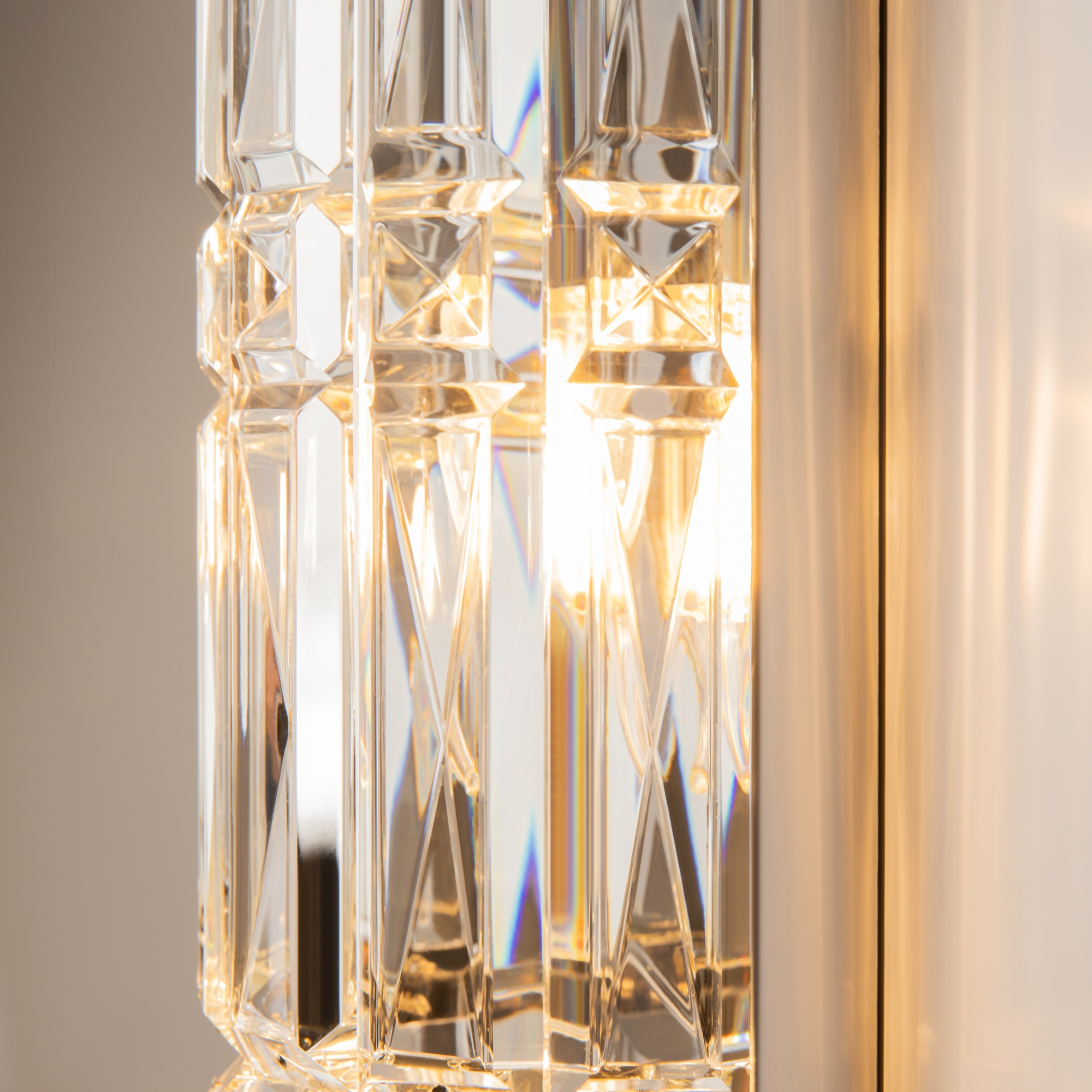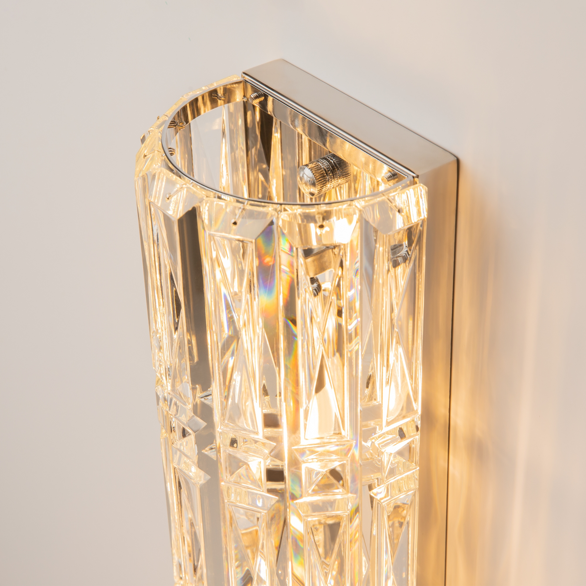 · Material der Beschläge: Metall, Farbtöne: Chrom und Gold. Dekor: Transparente Glaskristalle. Architektonischer Schliff von dekorativen Elementen. Lichtquelle: Leuchtmittel mit einer Fassung ?14.