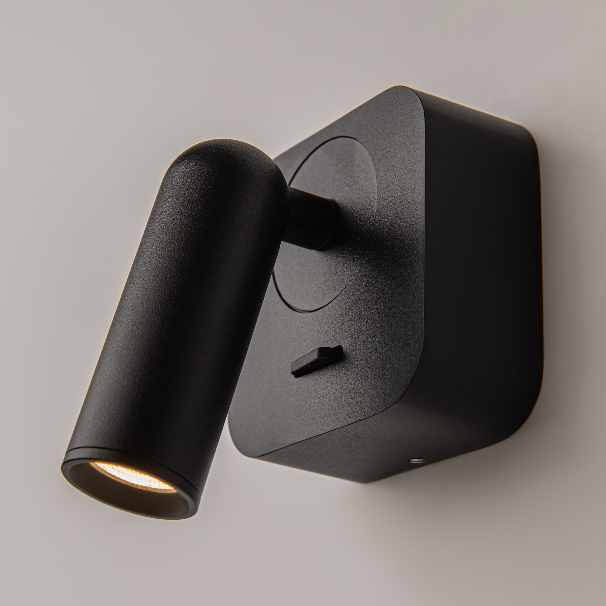 · Metallrahmen. Schwenkvorrichtung zur Einstellung des Lichtstroms. LED-Lichtquelle.