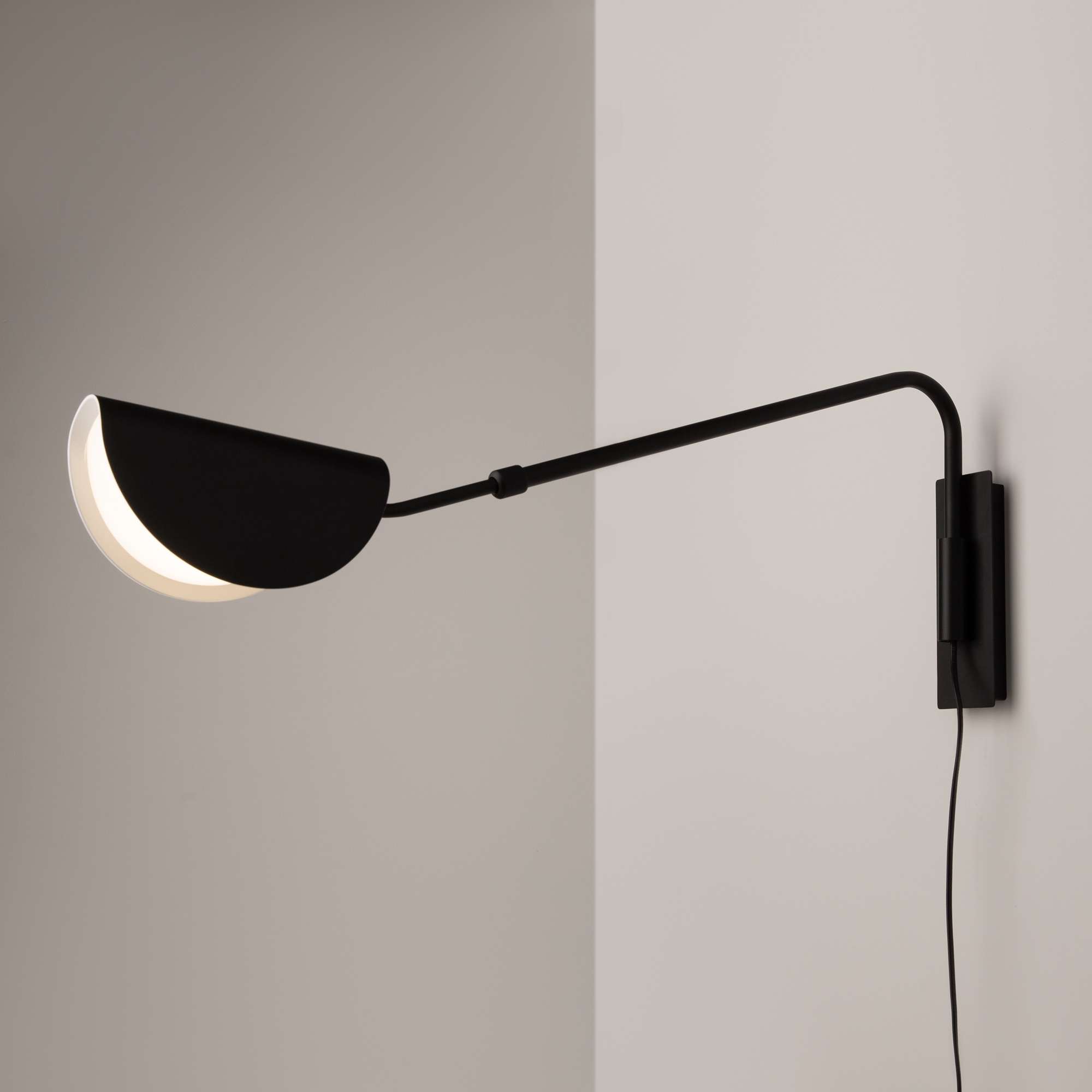 · Beschläge und Lampenschirm aus Metall, Farbton: Schwarz. Eine eigenartige Form des Lampenschirms mit einer weichen Kontur. Lichtquellen sind unter dem Acryl-Diffusor verdeckt.