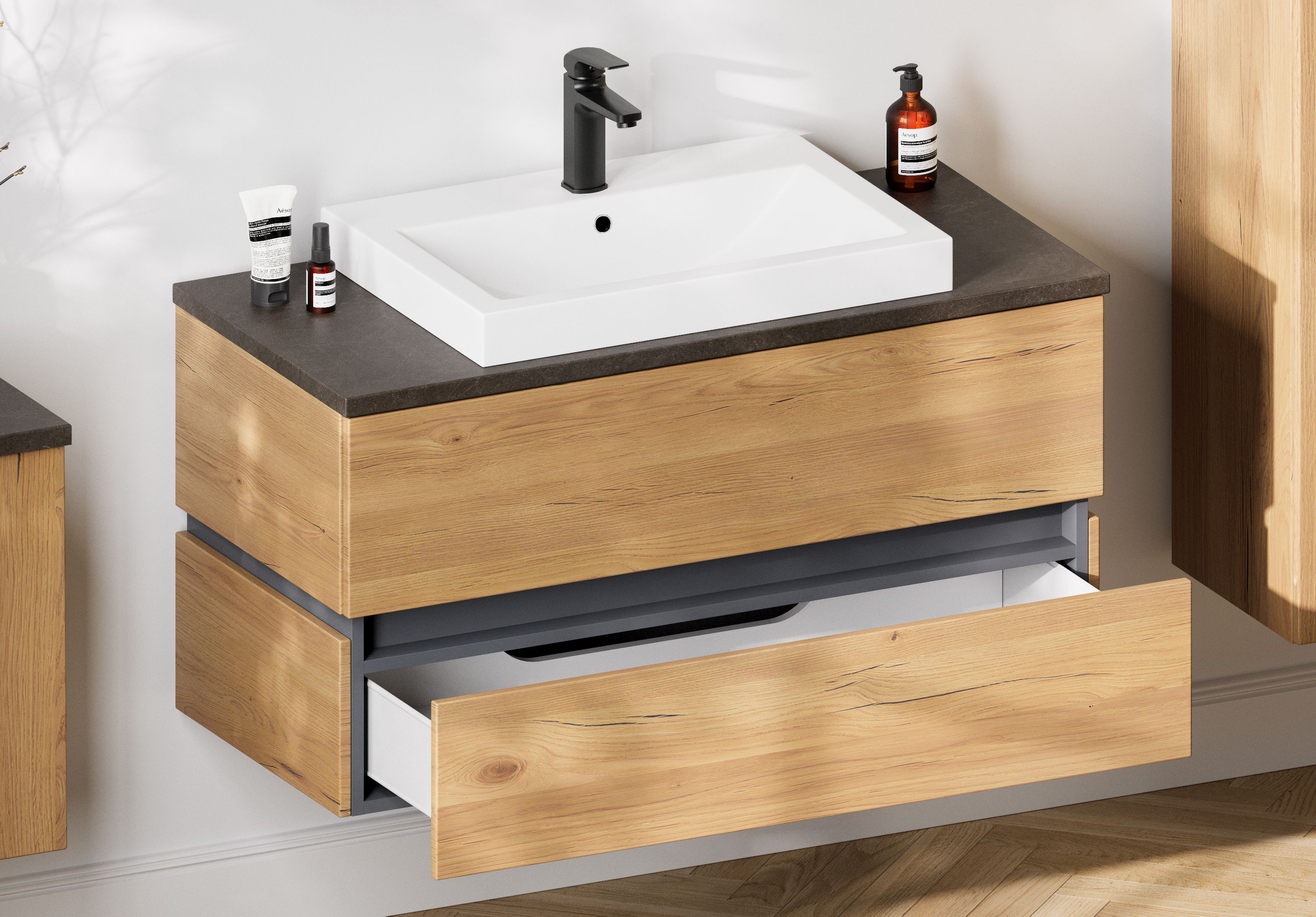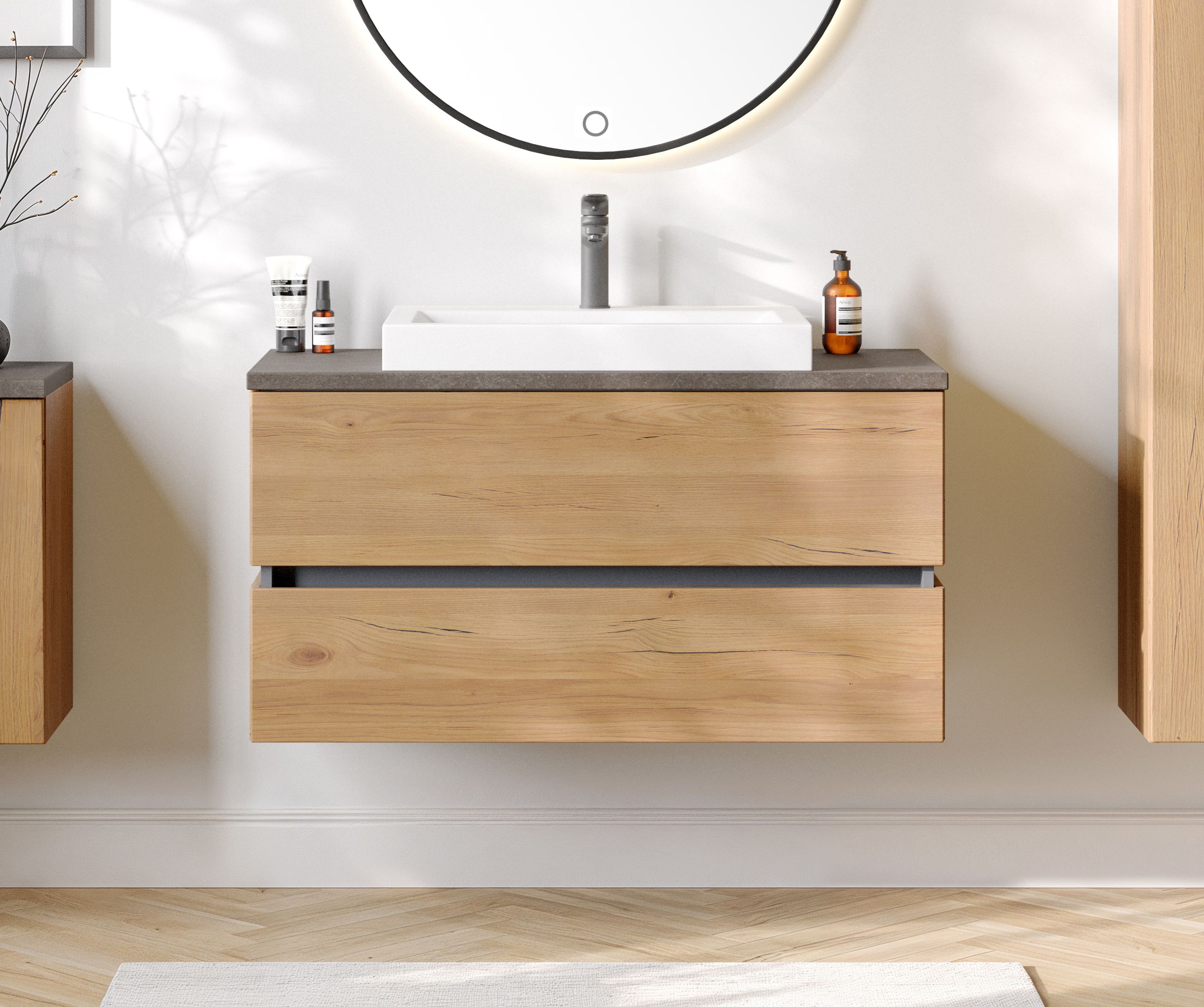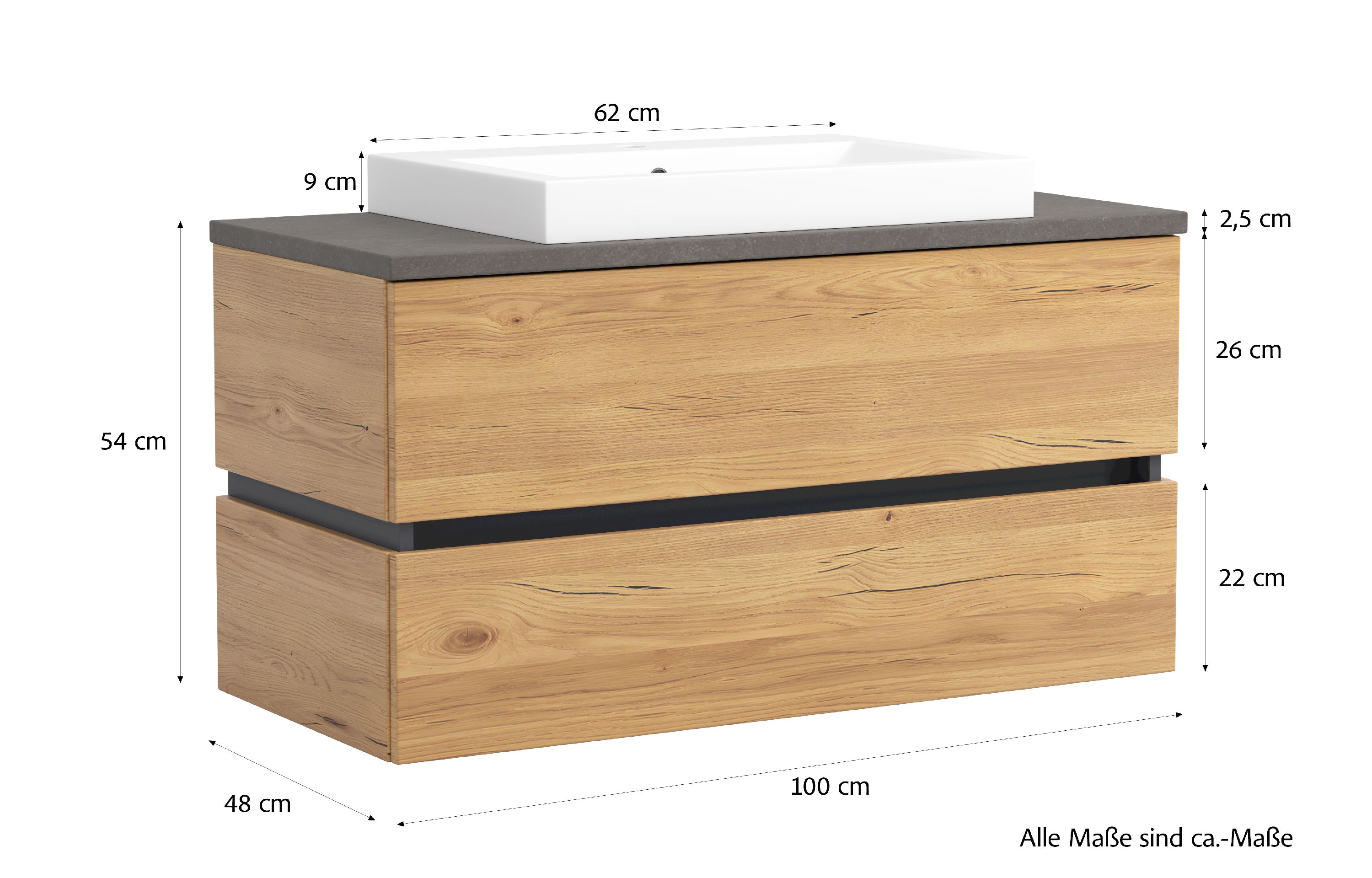 · Front und Korpus: MDF foliert in Dekor Wildeiche